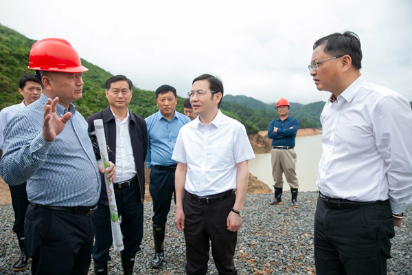 2021年5月21日上午,鷹潭市委書記黃喜忠深入由我集團承建的貴溪市塘灣水庫除險加固工程進行實地調(diào)研,指導在建工程防汛備汛。塘灣水庫壩址以上控制流域面積22.6平方公里,總庫容1321萬立方米,灌溉面積1.43萬畝,電站裝機容量320千瓦。塘灣水庫除險加固工程于2020年11月開工建設,目前在各參建單位共同努力下,按計劃穩(wěn)步推進,主體工程有望在合同工期內(nèi)完工。黃喜忠登上水庫大壩,實地查看了項目建設進展情況,并對水庫加固工程建設工作提出明確要求。他指出,要在確保質(zhì)量和安全的前提下,加快推進項目建設,確保早日建成見效。黃書記強調(diào),各參見單位在工作中要堅持人民至上、生命至上,切實把確保人民生命安全放在第一位落實。