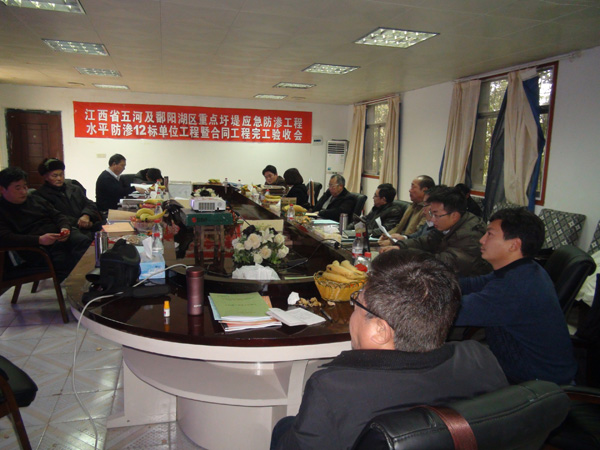 2012年1月10日,江西省五河及鄱陽湖區(qū)重點圩堤應急防滲工程建設項目部在江西省共青城市主持召開了水平防滲12標單位工程暨合同工程完工驗收會,并順利通過了單位工程暨合同工程完工驗收。驗收會由省河湖局許盛豐主持。公司吳鐵凡總工程師、工程部郭洪有經理參加了驗收會。