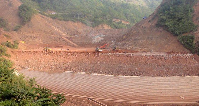 下游壩殼料正在施工中