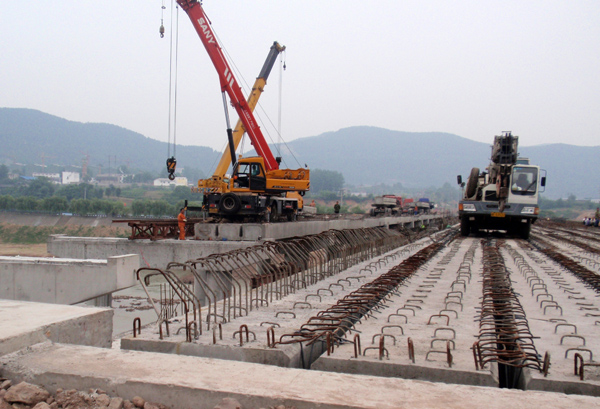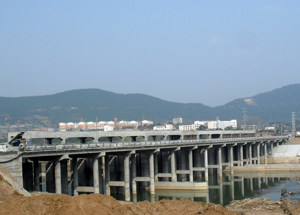 我公司2010年承建的大型市政災(zāi)后重建工程——四川省鹽亭縣梓江河橋閘工程,由兩座長270M,寬11.5M的橋梁夾一座大型水閘構(gòu)成。水閘全長202M,13孔×12M寬,采用6M×12M大型平板閘門,水閘50年一遇洪水下泄流量為7260M3/S,屬于大(I)型水閘項目工程。鹽亭縣梓江河橋閘工程現(xiàn)已按合同工期完工,正待驗收,它的建成將極大地提升鹽亭縣新城區(qū)“城在水中,水邊有城” 的新景象,成為鹽亭縣城市建設(shè)一道靚麗的風(fēng)景線。