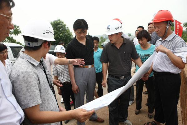 吉安市委、市政府,峽江縣、項目監(jiān)理、設計代表及我公司副總經(jīng)理曾朝文等陪同調(diào)研。