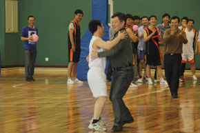 座談會(huì)結(jié)束后,大家乘車(chē)前往恒大體育館,活動(dòng)的第一項(xiàng)內(nèi)容是公司領(lǐng)導(dǎo)和青年員工共同完成的團(tuán)隊(duì)拓展游戲——“齊腳并進(jìn)”和“心心相印”兩項(xiàng)接力比賽。比賽過(guò)程中,公司領(lǐng)導(dǎo)和青年員工們熱情高漲,目標(biāo)明確,心往一處想,勁往一處使,充分發(fā)揮團(tuán)隊(duì)協(xié)作精神,爭(zhēng)分奪秒完成各項(xiàng)任務(wù),布滿汗水的笑臉在燈光下熠熠生輝,加油鼓勁和歡呼祝賀聲響成一片。拓展游戲項(xiàng)目結(jié)束,大家還進(jìn)行了籃球友誼賽和羽毛球比賽。