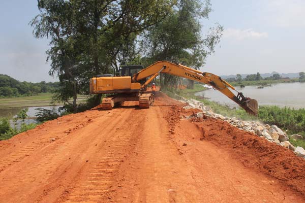 本次演練是以貴溪市新田聯(lián)圩防洪工程施工項(xiàng)目所在地連日持續(xù)大雨天氣,引發(fā)羅塘河河水暴漲,導(dǎo)致樁號K10+247~K11+000段大堤出現(xiàn)塌方、開裂現(xiàn)象,啟動防汛應(yīng)急預(yù)案為背景,開展的防汛演練。演練科目包括:險(xiǎn)情報(bào)告、啟動應(yīng)急預(yù)案,組織應(yīng)急救援隊(duì)伍投入搶險(xiǎn),堤腳拋石固腳、堤身砂卵石及土方填筑、堤身迎水面鋪設(shè)防沖彩條布、編織袋裝砂石堤身加固等內(nèi)容。演習(xí)完成后,參與演習(xí)的主要成員,對本次演習(xí)效果進(jìn)行了評價(jià),為公司《防汛應(yīng)急預(yù)案》的修訂完善作了充分的基礎(chǔ)工作。