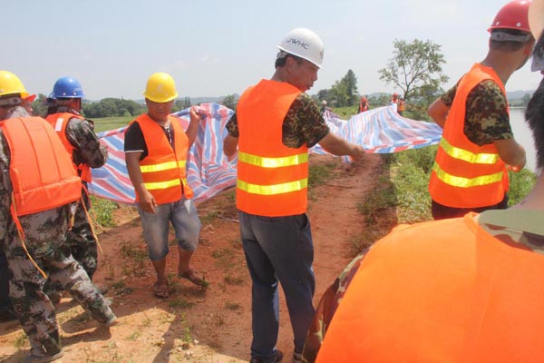 為檢驗(yàn)和考核我公司制定的《防汛應(yīng)急預(yù)案》的科學(xué)性、可操作性,同時(shí)檢驗(yàn)公司應(yīng)急救援組織及全體成員的實(shí)際應(yīng)急能力。2016年6月14日,公司結(jié)合2016“安全生產(chǎn)月”活動及貴溪市新田聯(lián)圩防洪工程施工項(xiàng)目部在建工程防洪度汛的施工安排,在貴溪市新田聯(lián)圩防洪工程施工項(xiàng)目部舉行了防汛應(yīng)急預(yù)案演練。