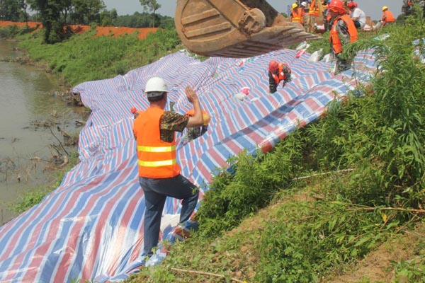 迎水面鋪設(shè)防沖彩條布