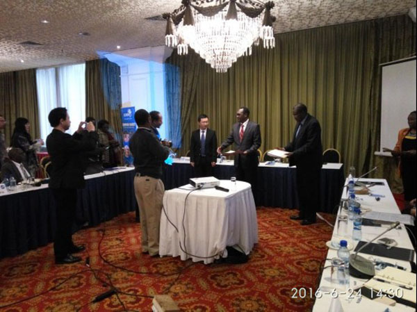 董國鋒處長(zhǎng)及肯尼亞商務(wù)部首席秘書Dr Chris Kiptoo共同頒發(fā)此次培訓(xùn)的結(jié)業(yè)證書