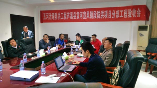 2016年10月31日,我公司承建的五河治理防洪工程蘆溪縣袁河宣風鎮(zhèn)段防洪項目在蘆溪縣水務局會議室主持召開了分部工程驗收會議,分部工程驗收工作組由江西省五河治理防洪工程項目部、蘆溪縣五河治理防洪工程項目部、江西省水利規(guī)劃設計院、江西省建洪工程監(jiān)理咨詢有限公司以及我公司等相關單位的代表組成。公司工程部郭洪有出席了此次驗收會議。