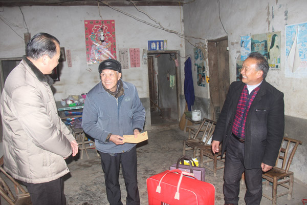 在貧困戶羅華妹家里,當(dāng)老人接過(guò)大米和食用油等慰問(wèn)物品后,頓時(shí)眼含淚花,激動(dòng)的拉著史主席的手說(shuō):“這么冷的天,你們能來(lái)看我這個(gè)老太婆,我真的很高興,共產(chǎn)黨的政策真好!”,史主席鼓勵(lì)羅華妹說(shuō):“要堅(jiān)定信心,黨的政策很好,我們也會(huì)多想一些能改變家庭生活和增加收入的辦法,你們家里要積極配合黨委政府和村委會(huì)的工作,爭(zhēng)取早日脫貧致富。”