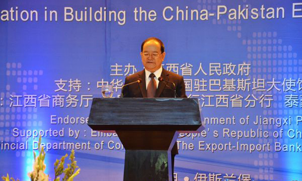 2017年4月20日,由江西省人民政府主辦,中華人民共和國(guó)駐巴基斯坦大使館支持,江西省商務(wù)廳、中國(guó)進(jìn)出口銀行江西省分行等承辦的“央企-贛企合作建設(shè)中巴經(jīng)濟(jì)走廊懇談會(huì)”在巴基斯坦首都伊斯蘭堡召開(kāi),中共江西省委書(shū)記、江西省人大常委會(huì)主任鹿心社應(yīng)邀出席會(huì)議并致辭。