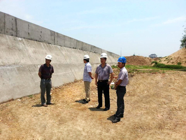 隨后,王總一行又馬不停蹄地趕往江西省五河治理防洪工程鉛山縣城西堤畜牧場至劉家洲段項目施工現(xiàn)場進(jìn)行檢查指導(dǎo)工作。董事長兼總經(jīng)理王元旦實地察看了施工現(xiàn)場,仔細(xì)了解了工程情況,對項目施工質(zhì)量作出了肯定的評價。他要求項目部要強(qiáng)化安全意識,加快進(jìn)度,確保工程質(zhì)量,按計劃完成并驗收。王總還親切慰問了一線施工人員,提醒項目經(jīng)理部要做好職工的降溫防暑工作。