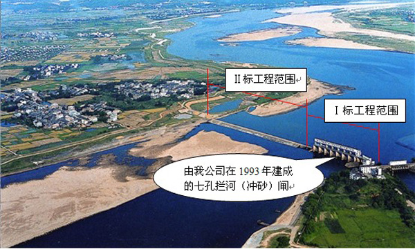 一期工程(即Ⅰ段段)的合同總金額為875.25萬元,實施的主要項目有砼溢流壩除險加固工程、攔河閘下游防沖加固工程、建筑物(攔河閘、泄砂閘)表面處理工程、閘門檢修及啟閉機的制造與安裝,圍堰工程等,開工日期為2007年10月18日,完工日期為2008年5月6日,單位工程質(zhì)量等級核定為優(yōu)良。