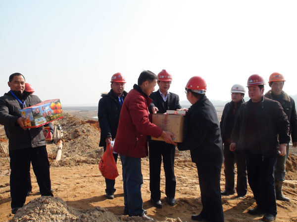 2011年2月3日,年初一上午,省河湖局郭澤杰局長(zhǎng)一行到垂直防滲4標(biāo)親切看望并慰問項(xiàng)目部人員。我司董事長(zhǎng)總經(jīng)理王元旦、上饒市水利水電工程建設(shè)監(jiān)理中心總經(jīng)理聶道淵等陪同慰問。