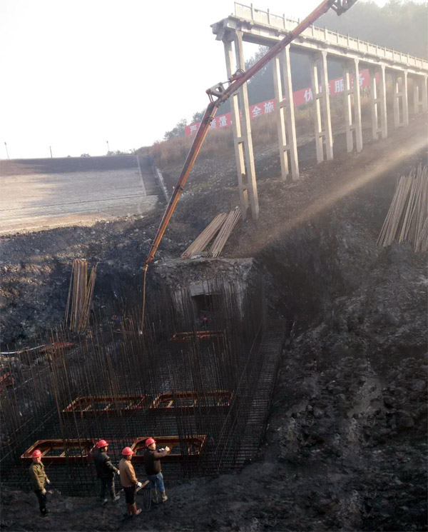 由我公司承建的上高縣城區(qū)供水引水管網(wǎng)工程南港水庫(kù)取水口底板混凝土于2017年12月18日順利澆筑完成。