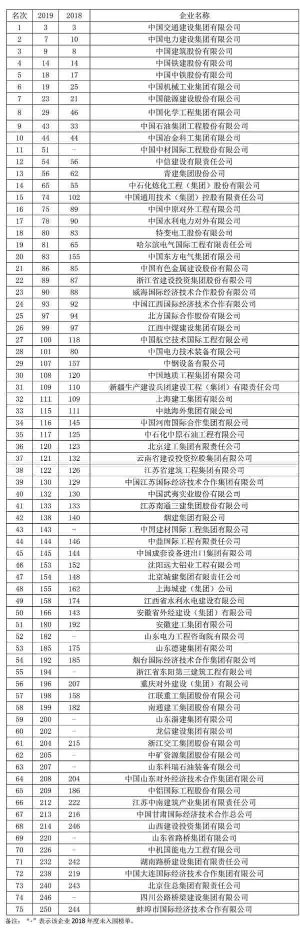 8月22日,2019年度美國《工程新聞紀錄(ENR)》“全球250家國際承包商”榜單揭曉。