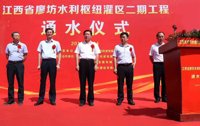 集團(tuán)資訊9月24日上午,廖坊水利樞紐灌區(qū)二期工程通水儀式在該工程西干渠渠首舉行。撫州市委副書記、市長張鴻星宣布開閘通水;市委副書記王宏安致辭;省水利廳副廳長王純、省發(fā)改委副巡視員王威出席;副市長徐國義主持。公司黨委書記、董事長王元旦,公司常務(wù)副總經(jīng)理王俊華,總經(jīng)理助理彭燦華出席儀式。