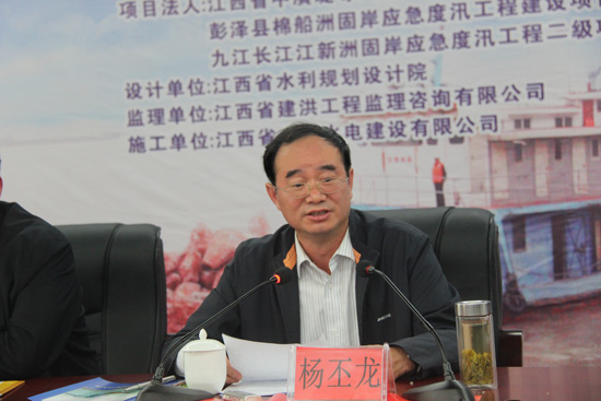 省水利廳副廳長楊丕龍在會上作了重要講話,他對九江長江江心洲固岸應急度汛工程棉船洲1標和江新洲1標進展予以充分肯定,并代表省水利廳黨委向有關(guān)單位和部門對水利建設(shè)的關(guān)心和支持表示衷心感謝,向奮戰(zhàn)在固岸應急度汛工程建設(shè)一線的參建各單位和工作人員表示親切慰問。