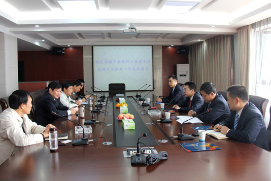 10月26日上午,中國(guó)銀行江西省分行行長(zhǎng)助理俞群一行4人到我司訪問(wèn)考察。公司董事長(zhǎng)、總經(jīng)理王元旦會(huì)見了俞群行長(zhǎng)助理一行。