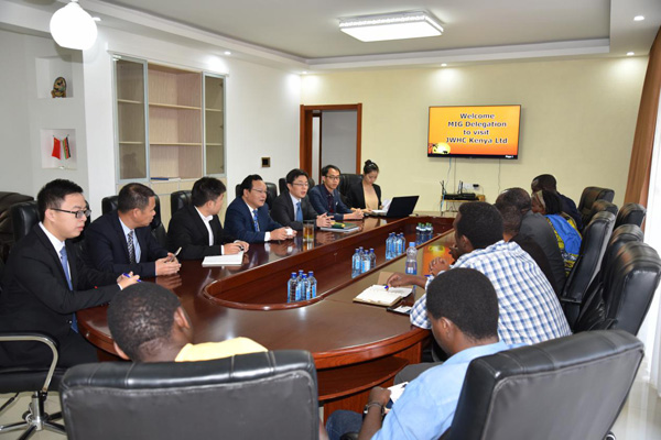 9月23日上午,盧旺達MIG考察團一行來我肯尼亞公司參觀。海外公司總經(jīng)理黃鄭民,肯尼亞分公司總經(jīng)理賀翔,肯尼亞分公司副總經(jīng)理彭紅軍,肯尼亞分公司商務(wù)經(jīng)理黃飛翔,肯尼亞分公司財務(wù)經(jīng)理程炤宇等參加了會見。