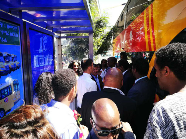 建成后的候車(chē)亭成為了亞的斯亞貝巴市街邊一道靚麗的風(fēng)景