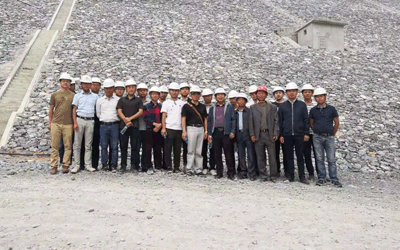 學(xué)習(xí)團(tuán)第一站是大麥西項(xiàng)目,項(xiàng)目負(fù)責(zé)人熊錦江帶領(lǐng)大家參觀了項(xiàng)目營(yíng)地并對(duì)項(xiàng)目營(yíng)地規(guī)劃建設(shè)、布置原則,水電解決方案等作了介紹。學(xué)員們隨后又參觀了油料庫(kù)、鋼筋加工、砂石料生產(chǎn)系統(tǒng)、混凝土制拌系統(tǒng)、上壩公路、導(dǎo)流涵管、溢洪道及主壩施工區(qū),項(xiàng)目負(fù)責(zé)人給學(xué)員們講解了現(xiàn)場(chǎng)各個(gè)作業(yè)面的安全預(yù)防把控、管理核心、質(zhì)量控制點(diǎn)、施工工藝程序等。學(xué)習(xí)期間,學(xué)員們和項(xiàng)目部在會(huì)議室召開(kāi)了簡(jiǎn)短的座談會(huì),大家觀看PPT并進(jìn)行交流,通過(guò)溝通學(xué)員們進(jìn)一步了解和掌握了大麥西項(xiàng)目的難點(diǎn)要點(diǎn)。