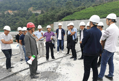 第二站,學(xué)習(xí)團(tuán)來(lái)到新屯水庫(kù),跟隨著項(xiàng)目管理團(tuán)隊(duì)參觀了導(dǎo)流隧洞、上壩公路、主壩施工區(qū)、進(jìn)水塔、溢洪道、沉降觀測(cè)室、料場(chǎng)、復(fù)建公路等施工區(qū)域,隨后由項(xiàng)目副經(jīng)理向國(guó)華、測(cè)量負(fù)責(zé)人鄒國(guó)群及質(zhì)量負(fù)責(zé)人廖軼先分別就各自負(fù)責(zé)的工作內(nèi)容向?qū)W員們進(jìn)行了現(xiàn)場(chǎng)授課。通過(guò)現(xiàn)場(chǎng)學(xué)習(xí),學(xué)員們了解到該工程七大特點(diǎn)。