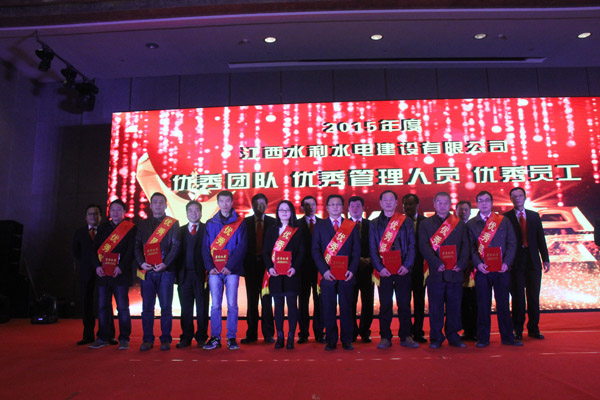 隨后,公司董事長王元旦、總經(jīng)理徐洪良和相關(guān)領(lǐng)導(dǎo)向海外公司等10個(gè)優(yōu)秀團(tuán)隊(duì)、郭洪有等22位優(yōu)秀管理者和周家煌等30位優(yōu)秀員工進(jìn)行頒獎(jiǎng),感謝他們在過去的2015年為江西水建發(fā)展所作出的貢獻(xiàn)。