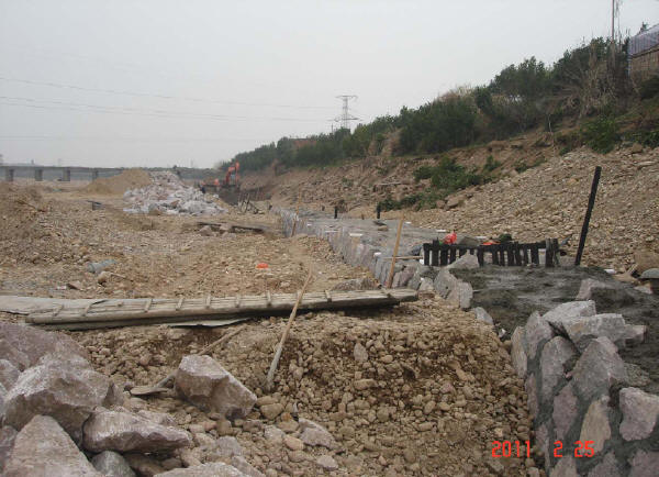 堤基清理:必須對堤內(nèi)、外坡腳線外1m范圍內(nèi)的亂石、墳墓、各種建筑物和垃圾、雜草、樹木、樹根、腐植土及淤泥全部清除,并棄至背水坡腳以外或指定場地,水井、泉眼、洞穴等按設計要求處理,并經(jīng)驗收確認合格為止。