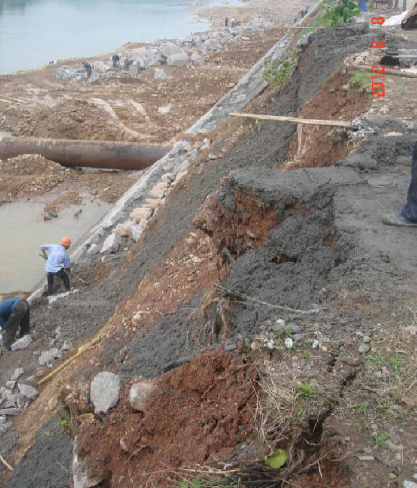 ①土石結(jié)合部的土料填筑質(zhì)量(壩體與溢洪道、與山體);砌體、砼結(jié)構、山體與土體之間必須設置截水墻!例:新疆聯(lián)豐水庫