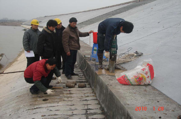 ※ 重點檢查水庫的險情是否已按設計要求給予消除;工程質(zhì)量是否按規(guī)定檢驗,各項檢測數(shù)據(jù)是否滿足設計要求或相關標準:土方的壓實度、滲透系數(shù);混凝土(含預制塊)的抗壓強度、抗凍、抗?jié)B、彈性模量;砂漿的抗壓強度;灌漿的壓水試驗結(jié)果(透水率Lu):固結(jié)灌漿≮5%、帷幕灌漿≮10%。